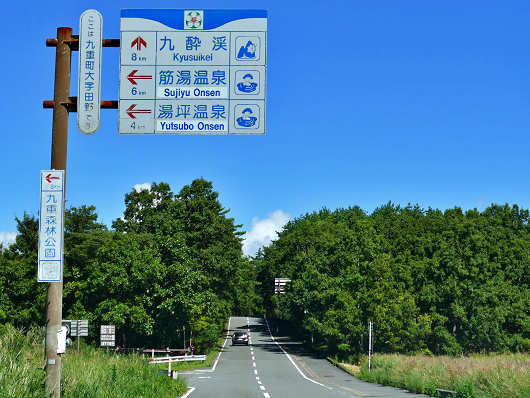 長者原登山口を出発したら、やまなみハイウェイから外れて筋湯温泉方面へと進みました。
