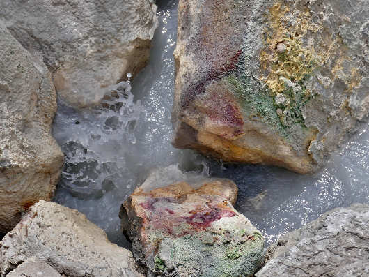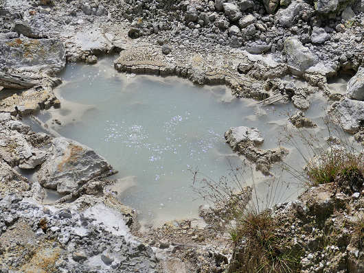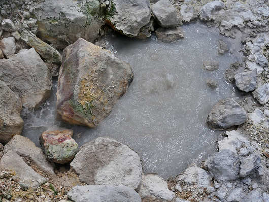 熱水溜まりのすぐ横からは熱水がボコボコと音を立てて湧き上がっていましたが、看板には地獄温度92℃と書かれていたので、ここは水が沸騰する100℃より若干低い温度のようなので、これが美味しい温泉卵のできる温度なのかも知れませんね?