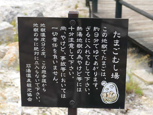 ここには「たまごむし場」と書かれた看板が立てられていて、生卵を持ち込めば誰でも自由に温泉卵を作ることができます。