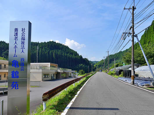 壁湯温泉を眺めたら、宝泉寺温泉へと続く車道を歩いて、次の目的地の「仙洞の滝(せんどうのたき)」へと向かいました。滝入口までの道路沿いには老人ホームがあるだけで民家は一軒もありませんでした。