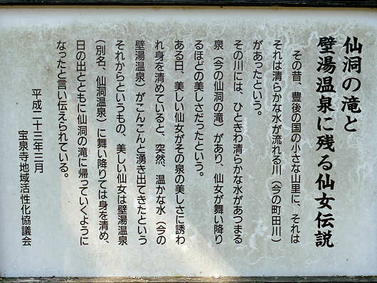 ここには仙洞の滝の説明板もありました。この説明板を読んでいたら、どんなにきれいな滝なのかと早く滝を見たくなってきました(笑)