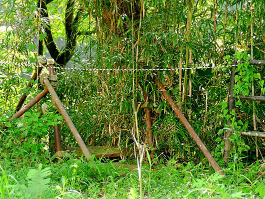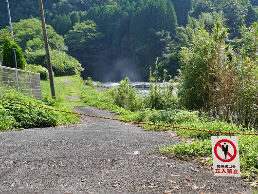 ここからは川岸へ降りる階段があるようでしたが、ここにも立入禁止のロープが張られていて、辺りには雑草も繁っていたので、ここから先へ行くのは断念して引き返しました。帰ってから調べたら、この先の階段が破損していて危険なために立入禁止にしているそうでした。