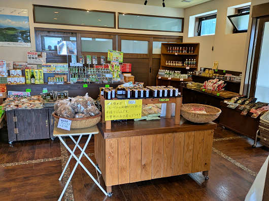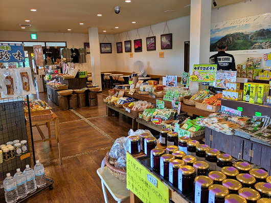 牧ノ戸レストハウスの店内はこんな感じで、小さなお店の割には商品は豊富なんですよね。そして奥にはお食事処もありました。