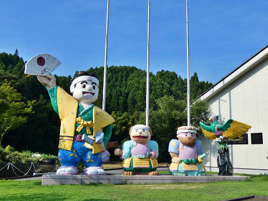 こちらの作品は玖珠町を代表するメーサ台地の切株山の頂上に座る、日本のアンデルセンと呼ばれる玖珠町出身の久留島武彦ですね。