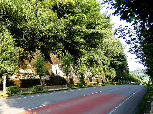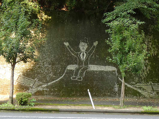 でも苔アートが描かれている壁面の前には街路樹が植えられているので、樹木が邪魔になってよく見ないんですよね。