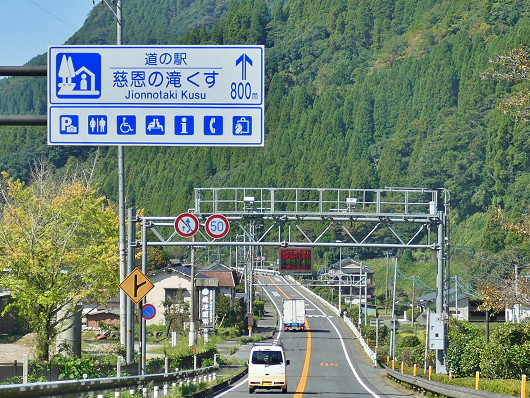 とんかつ李音は国道210号のトンネルの入口付近にありますが、このトンネルを抜けるとすぐに「道の駅 慈恩の滝くす」の標識が見えてきます。