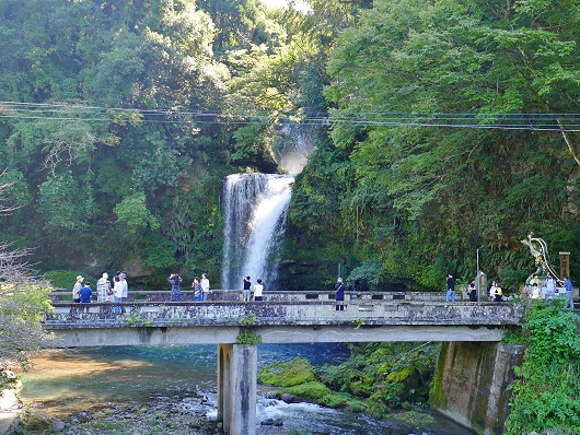 道の駅の駐車場に車を停めて慈恩の滝へ向かおうとしたら、ちょうど大型観光バスがやって来て、ゾロゾロと観光客が降りて滝へと向かい始めたので、慈恩の滝は国道沿いから眺めましたが、橋の上にいる観光客をよく見たら、男性も女性もサングラスをかけた人ばかりでした(笑)