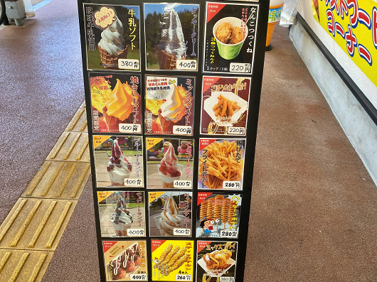 りゅうママと一緒に出掛けた時には、必ずランチと食後のデザートがセットになりますが、この辺りには美味しいスイーツのお店が無いので、ここでソフトクリームを食べました。画像を見ても分かるようにこの道の駅はソフトクリームの種類が豊富なんですよね。