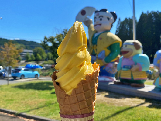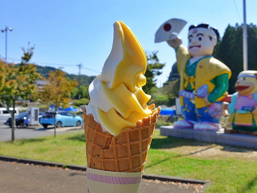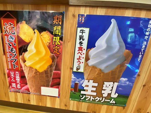 これがりゅうママの買った「焼きいもソフト」です。大分県産さつま芋の甘太(かんた)くんを使っていて、とっても美味しいソフトでした。