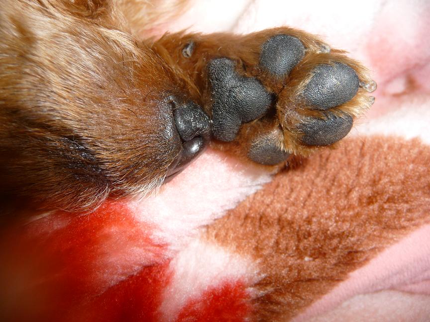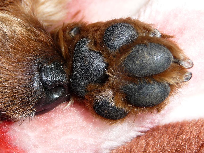 爪は小さい頃に一度切ったきりで、あとはまったく切ってないんだよ、毎日、朝夕に1時間ずつもお散歩するから擦り減って伸びないんだよ、お散歩をたくさんするから肉球がとっても丈夫なんだよ、だからどこへ連れてってもらってもたくさんお散歩できるんだよ。