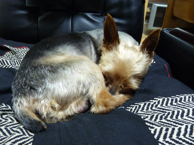 もう下痢は治まったのかな?グーグーいびきをかいて寝ています。