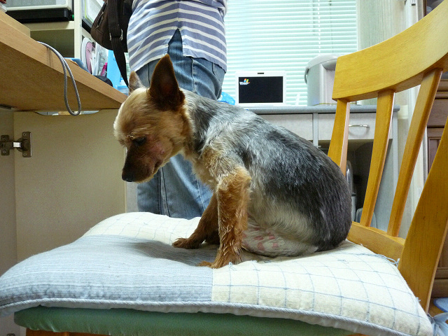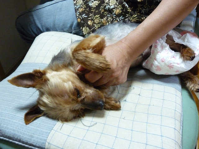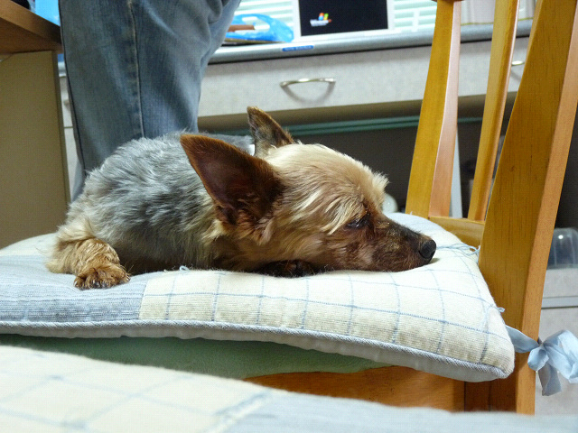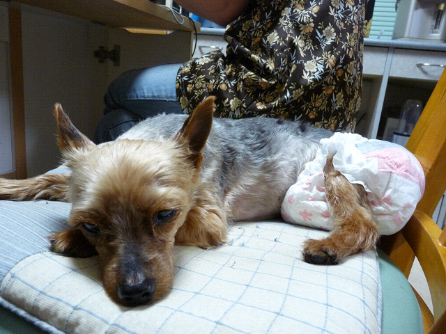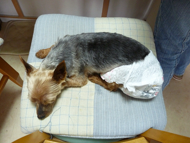 りゅう君、ちょっと苦しそうです、この日は朝から昼過ぎまでに6回下痢をしました、いつもの下痢より症状が重たいようだったので病院で貰った下痢止めの薬を飲ませてあげました。