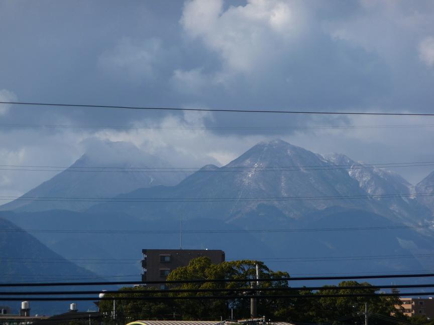手前の鶴見岳はうっすら雪化粧しています、由布岳は雲に隠れてよく見えませんが真っ白に雪化粧していました。