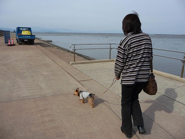 金立SAを出発してしばらく走ってから、武雄北方ICで高速道路を降りて1時間ほどで海岸沿いの道路に出ます、生まれて初めて見る有明海だよ、広いなぁ、