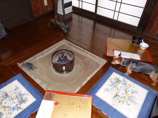 ここが囲炉裏の部屋です、部屋の広さは4畳半か6畳くらいかな?今回はせっかく囲炉裏があるからって事で炭火焼料理を注文したから、囲炉裏を囲みながらここで食事です、懐石料理の場合は和室で食べるのかな?いずれにしても夕食は部屋食だよ、