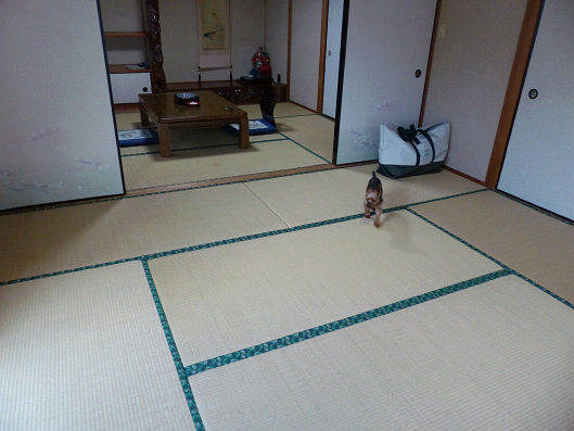 そしてこちらが和室です、8畳と6畳の2間続きできれいな畳がとっても気持ちがいいよ、そして手前の8畳の間に布団を敷くんだって、ここではワンコの制約については何も言われなかったから、最低限のマナーが守れればお部屋で自由にしていいみたいだよ、それに畳の数は8枚と6枚だけどとっても広く感じたんだよねぇ~、本間だからかな?