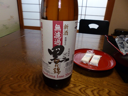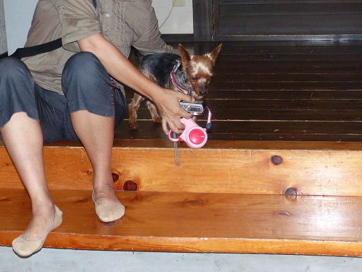 パパは近くのお店で買ったここの名産?の”黒伊佐錦”をバッグから取り出してまずは一杯だって、でもゆっくりと焼酎を飲んでるヒマはないよ、これから僕のお散歩をしてお風呂にも入らないとね、