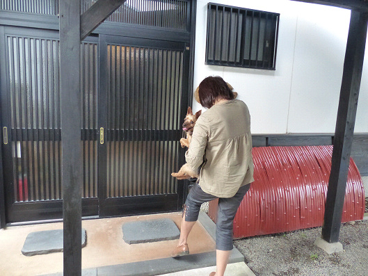 玄関の扉を開けて中へ入りました、玄関はこんなに広いから大型犬ならここでも快適に過ごせそうだね、