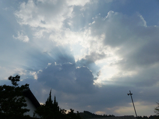 外に出て空を見上げたら、不思議な光景が広がっていました、もうすぐ日が暮れるけど明日も晴れるのかなぁ?