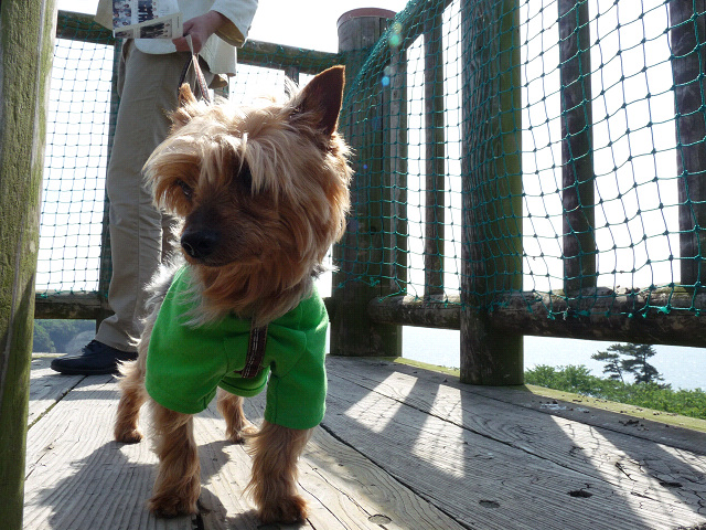 ヴィラ・フロレスタに泊まる事になったので、時間がたっぷりあるから今日はじっくりここを探検です、木製展望台のいちばん高いところまで登ったよ、りゅう君は高いところがちょっと苦手だからビビッてます。