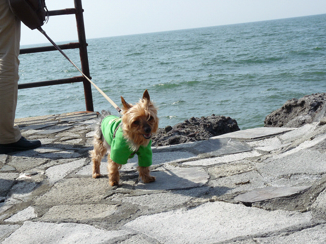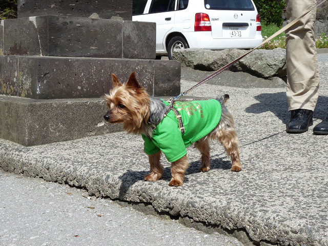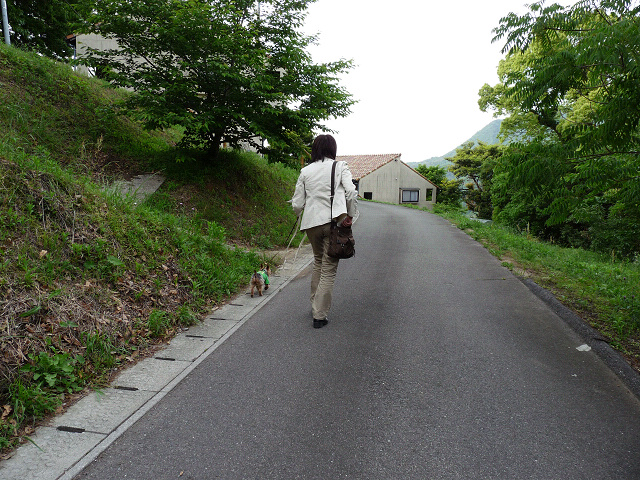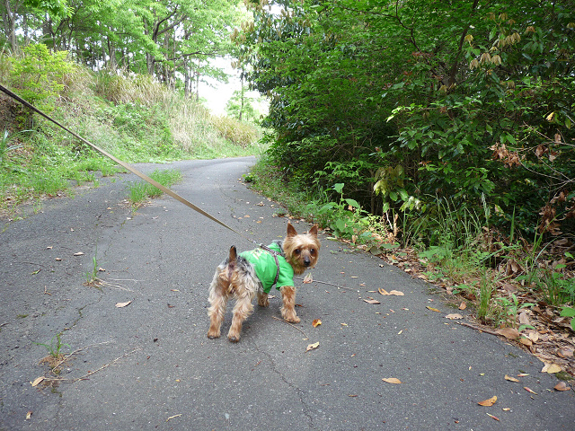 朝のお散歩開始です、ママぁ、昨日の蛇の抜け殻の主は居ないよね?