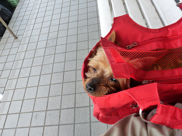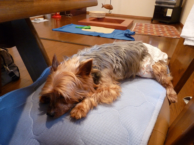 お散歩が終わって、ご飯を食べたから りゅう君はもうおやすみです、オムツはマーキング防止の為だから心配しないでね。