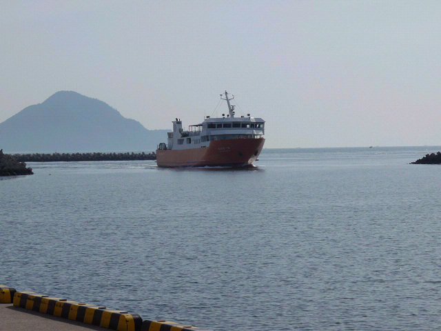 フェリーが姫島からやって来ました、これからこの船に乗って姫島へ渡るよ。