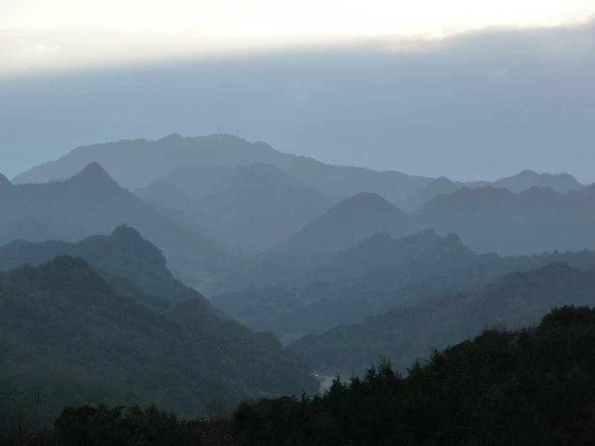 宿から見える国東半島の山々です、うっすら霧がかかってとても幻想的です、一番高い山は両子山です。