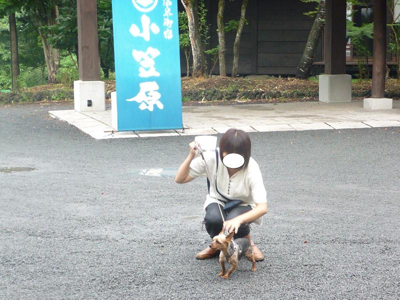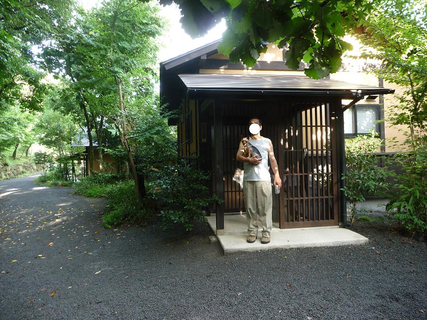 今日お泊りするお部屋の前で記念撮影、ここは全室離れになってるから少しぐらい吠えても大丈夫だよ。
