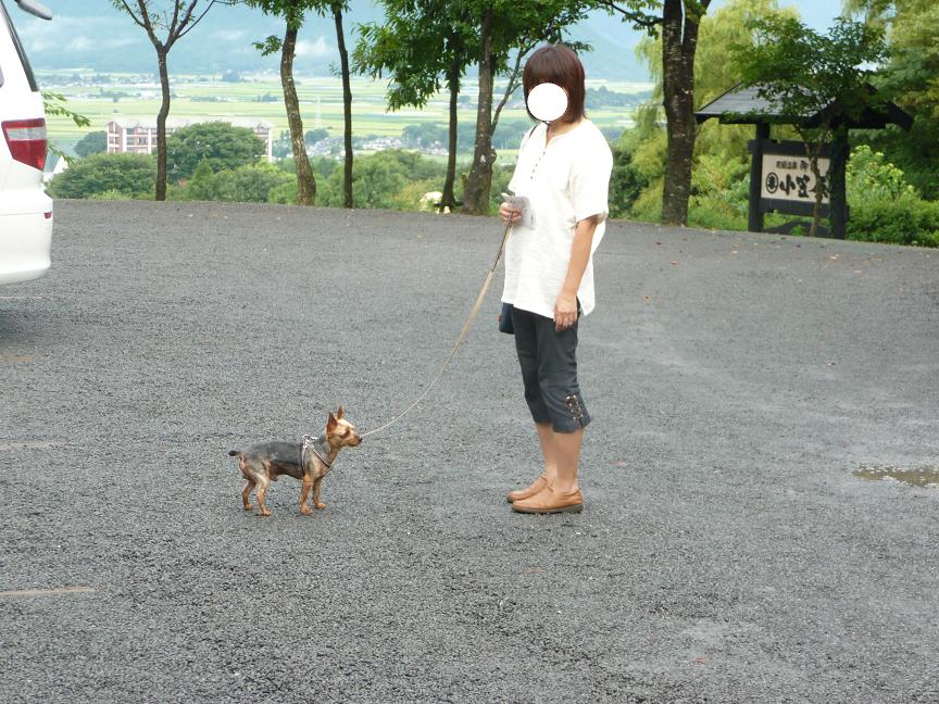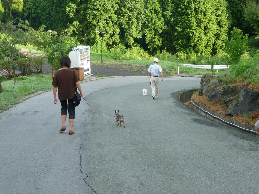 さっそく、朝のお散歩開始です、前を行くわんちゃんも同じお宿に泊まってました。