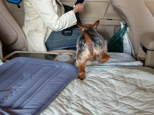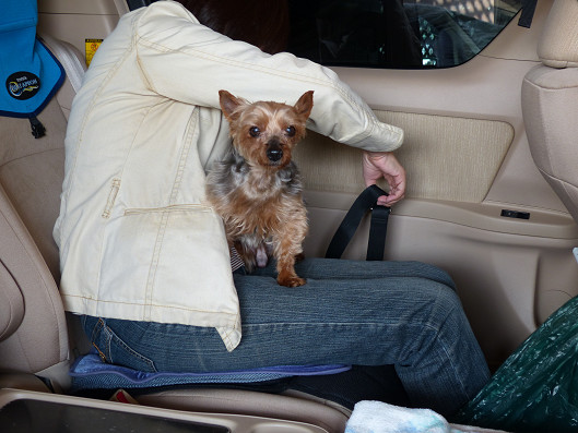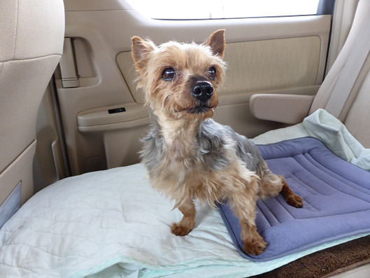 これからお出かけしようとりゅう君を車に乗せたら、りゅう君は速攻でママのひざを目指してジャンプしました、