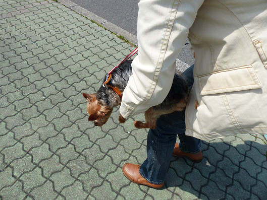 さぁ、りゅう君のお散歩です、りゅう君はママが降ろしてくれるのを待ち切れなくて自分から飛び降りようとしています、