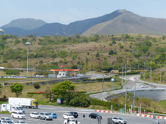 別府ICから数分で別府湾SAに到着しました、ここでりゅう君はお散歩です、SAからは別府の山並みが間近に見えています、山肌が黒く見えているのは野焼きの跡じゃなくて数日前に発生して一晩中燃え続けた山火事の跡です、