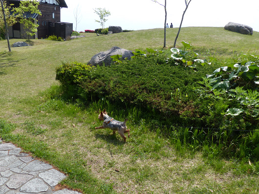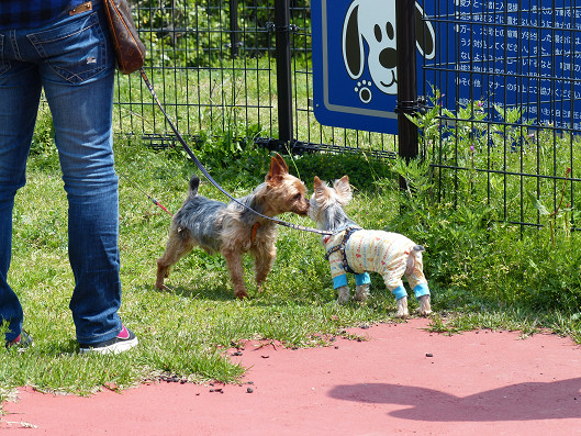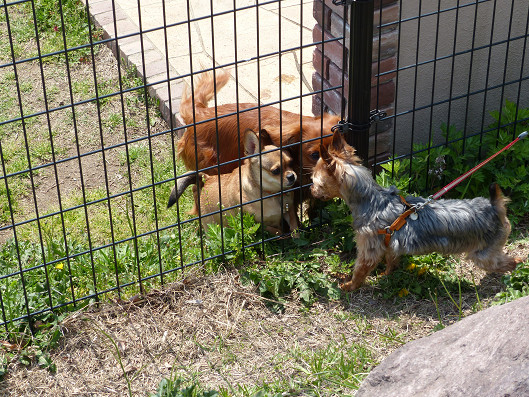 ランの周りをお散歩していたら、りゅう君よりも一回り小さいヨーキーがやって来ました、2歳の男の子だそうで体重は2kg無いんだって・・・