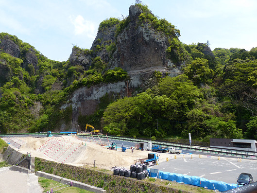 青の洞門を抜けたら右手には広い駐車場とお土産屋さんがあるはずなんだけど、何故か更地になっていて工事をしているようでした、