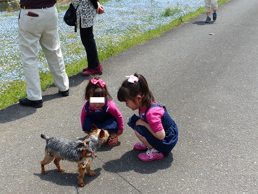 お散歩を始めたりゅう君はいきなり女の子からかわいいねって声をかけられて嬉しそうです、りゅう君は子供が嫌いなんだけど優しく声をかけられるとまんざらでもなさそうです、