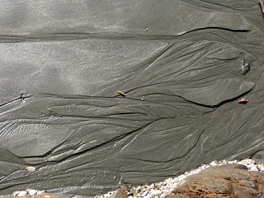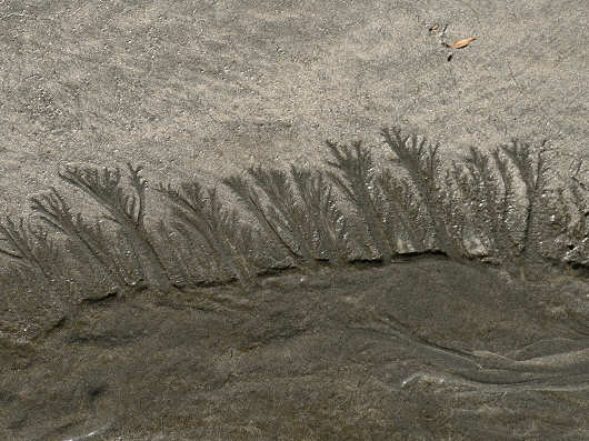 波当津海岸の砂は珊瑚が細かく砕けてできているのか?表面が白い砂で覆われていて、打ち寄せる波によってこの様なきれいな砂紋を見ることができます。ここから先は見事な砂紋の画像を見て下さいね。