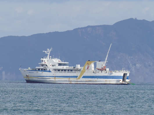 気になったのでさらに望遠で撮影をしてみましたが、遠くから見る限りでは点検などの作業を行っている様子はありませんでした。ちょっと大きな波がきたら船体に海水が入ってしまうのに、いったい何をしているんでしょうね?