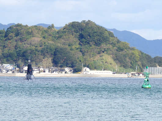 佐伯湾にはこのフェリー以外には船が停泊していないようだったので、湾内をぐるりと見渡してから帰ろうとしたら、いつもの見慣れたブイの横に見た事のない黒いブイのようなものがありました。