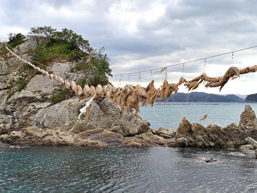 地元新聞に佐伯市上浦の「豊後二見ヶ浦」に、大しめ縄の近くまで行ける遊歩道が設置されたと載っていたのでさっそく見物に行ってみました。