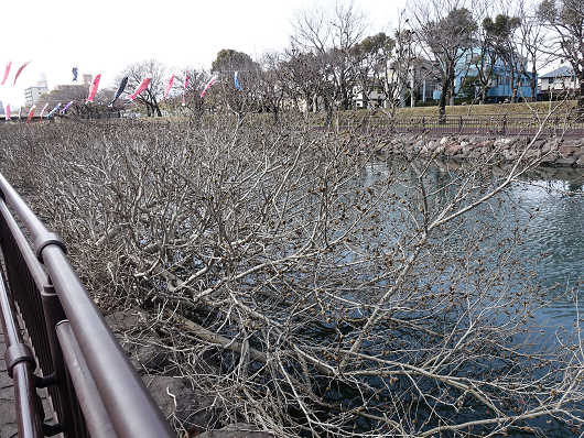でも裏川沿いにズラリと植えられているハマボウは、まだ葉を落としたままで新芽も出ていませんでした。ハマボウの黄色い花が咲き乱れる初夏も待ち遠しいところですね。