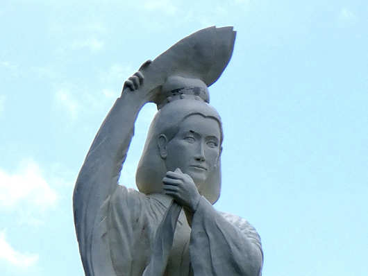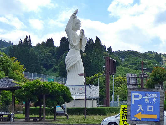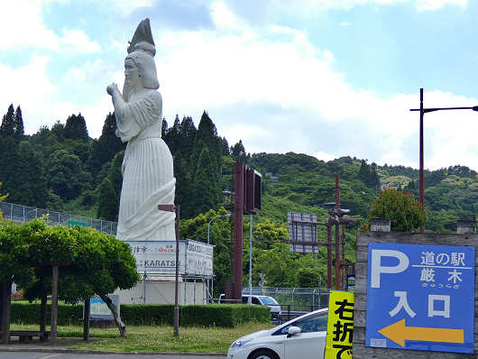 この道の駅の一番の特徴は巨大な作用姫(さよひめ)の像です。佐用姫はこの地の豪族の娘といわれる女性で、松浦佐用姫とも呼ばれていますが、この像は台座を含めると高さが14mもあるそうです。