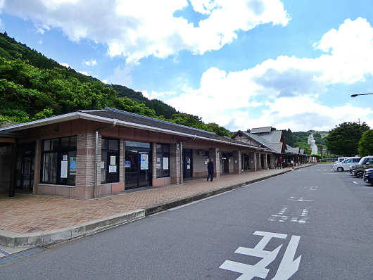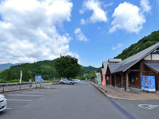 道の駅「厳木」の全景です。厳木町は平地のあまり無いところで、この道の駅も国道203号に並行するように細長い敷地になっているので、駐車場の端から端までがよく見えないほどで、ここには普通車が60台と大型車が3台停められるそうです。
