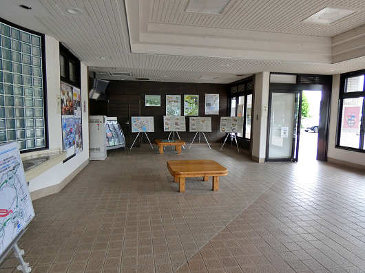 館内はこの様にガランとしていて小さなベンチのようなものが2つあるだけでした。この道の駅には屋外の飲食・休憩スペースなどはほとんど無いので、ここをうまく利用できればいいような気もしますね。