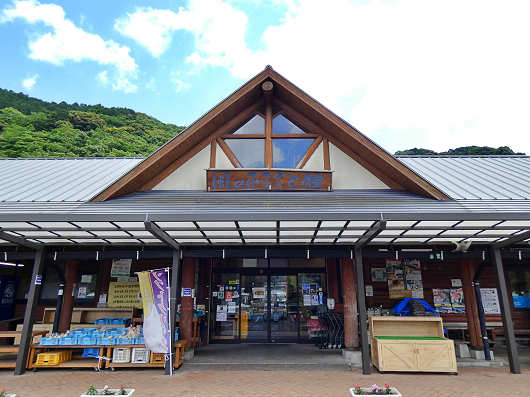 この建物は物産館です。入り口には「風のふるさと館」と看板が掲げられていました。館内にはお土産品の他に弁当などもたくさん置かれていて、多くの人たちで賑わっていました。