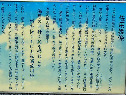 作用姫の説明書きです。これを読むと佐用姫は万葉集にも歌われているそうなので、実在の人物だったのかも知れませんね?