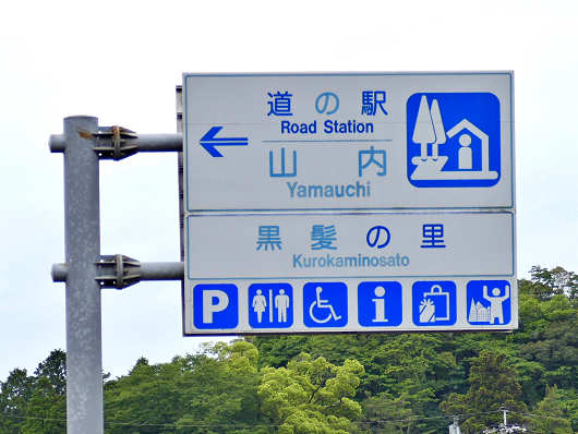 ここは佐賀県武雄市山内町にある道の駅「山内(やまうち)」です。 ここは昨年の秋に佐賀バルーンフェスタへ行った時に寄る予定だったところですが、時間の調整がつかなくて寄れなかったところで、今回が初めての訪問になる道の駅です。標識には「黒髪の里」とも書かれていますが、これは物産館の名称のようです。