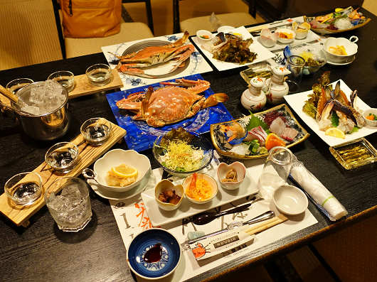 この画像は後から出てきた茹で蟹やお酒なども入れて撮影した料理です。でもこれが全部じゃなくて、食事中にも何種類かの料理が出てきました。やっぱり昼食は抜くべきだったかな?とふと頭をよぎりました(笑)