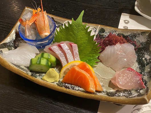 刺身の盛り合わせです。新鮮コリコリでとても美味で、普段だったら日本酒の最高の肴になるんですが、蟹の刺身を先に食べたので、これは無くてもよかったかな?って感じでした(笑)