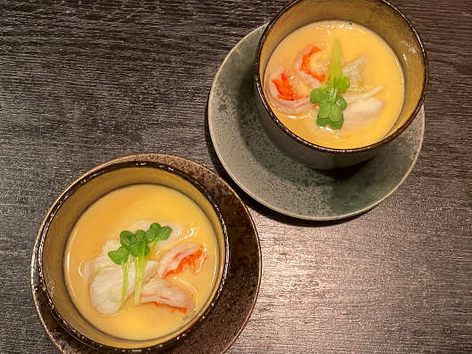 茶碗蒸しです。これにも蟹の身が入っていました。これ以外にも蟹の身が入ったサラダや、いくつかの小鉢などまさに蟹づくしの料理でしたが、途中からお腹がいっぱいになって、私の分の茹で蟹は食べ切れずに翌日の朝食時に食べようと残してしまいました。